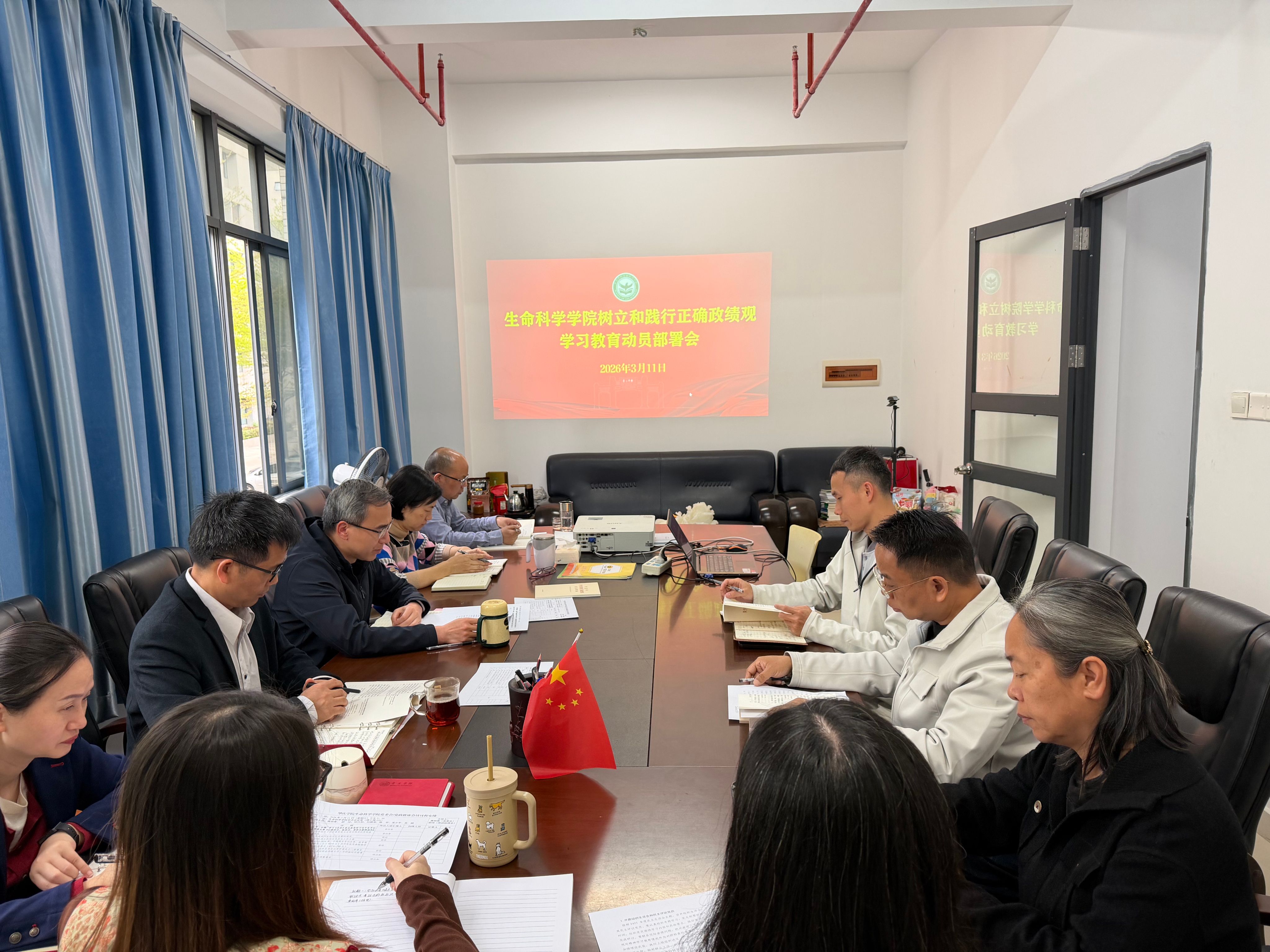 3月11日下午,生命科学学院党委召开树立和践行正确政绩观学习教育动员部署会,全面落实学校党委部署要求,对学院学习教育工作进行动员部署。学院党委书记黄剑青主持会议并作动员讲话,学院党委委员、党支部书记参加会议。