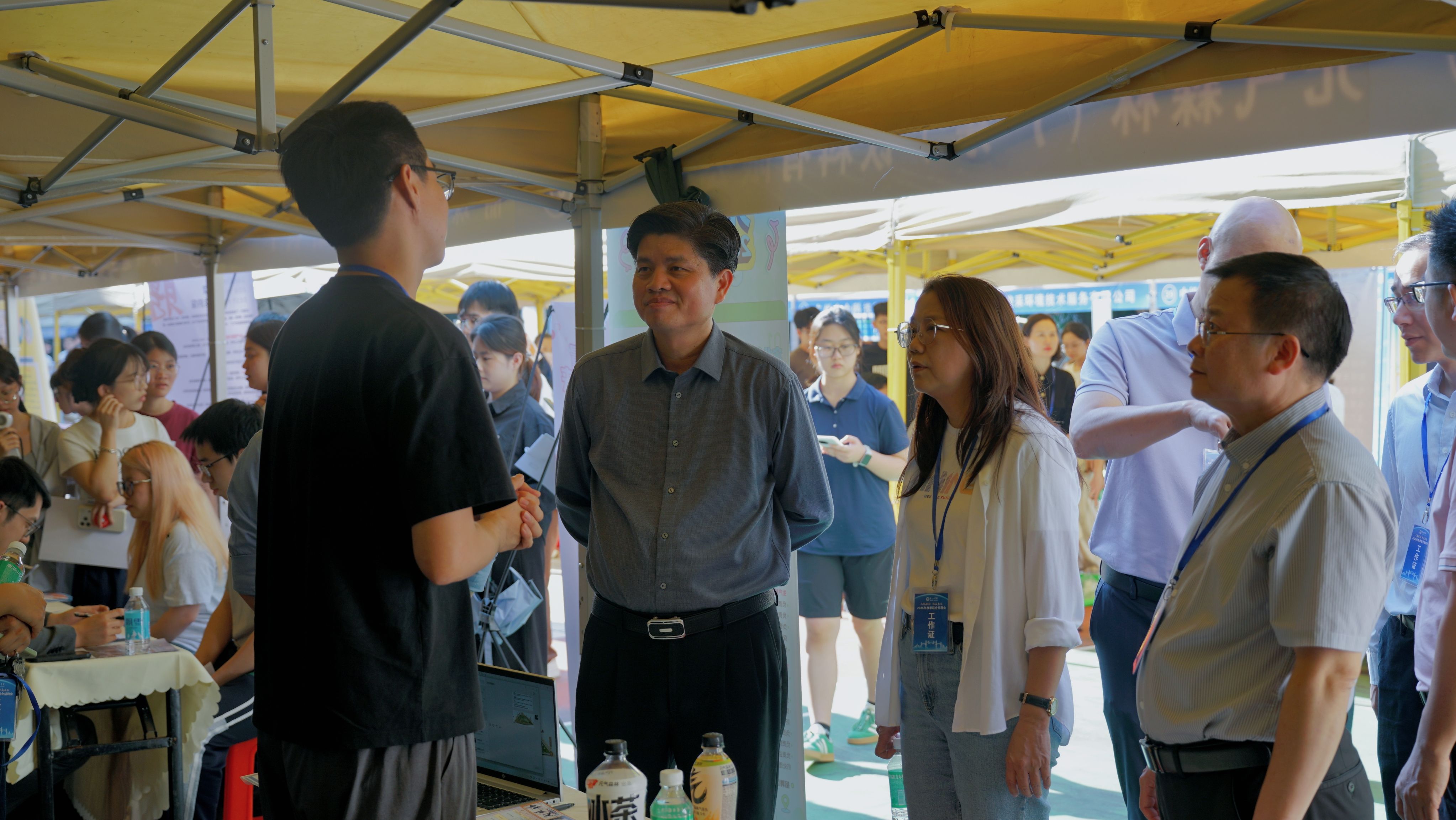 校党委副书记欧洪湛在学生工作部(招生与就业指导中心)部长陈玉华的陪同下现场指导工作。欧洪湛副书记细致走访多家用人单位,深入了解行业发展趋势与人才需求,亲切慰问参会毕业生,并勉励大家把握机遇、顺利就业。三个主办学院的相关负责人全程协调保障,确保招聘会高效、有序进行。