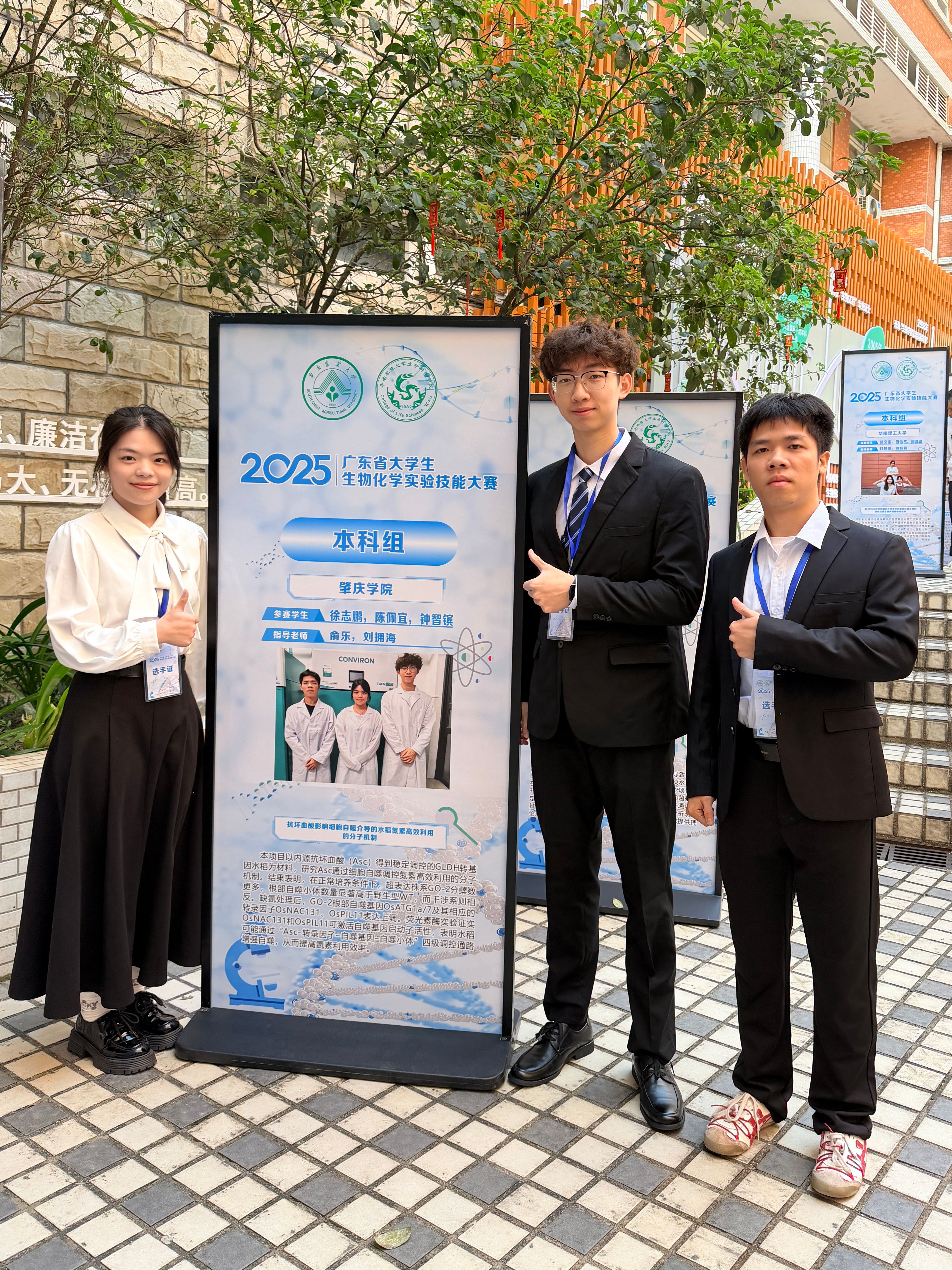 2025年11月23日,2025年广东省大学生生物化学实验技能大赛决赛在华南农业大学成功举办,生命科学学院徐志鹏、陈佩宜、钟智镔同学荣获一等奖。