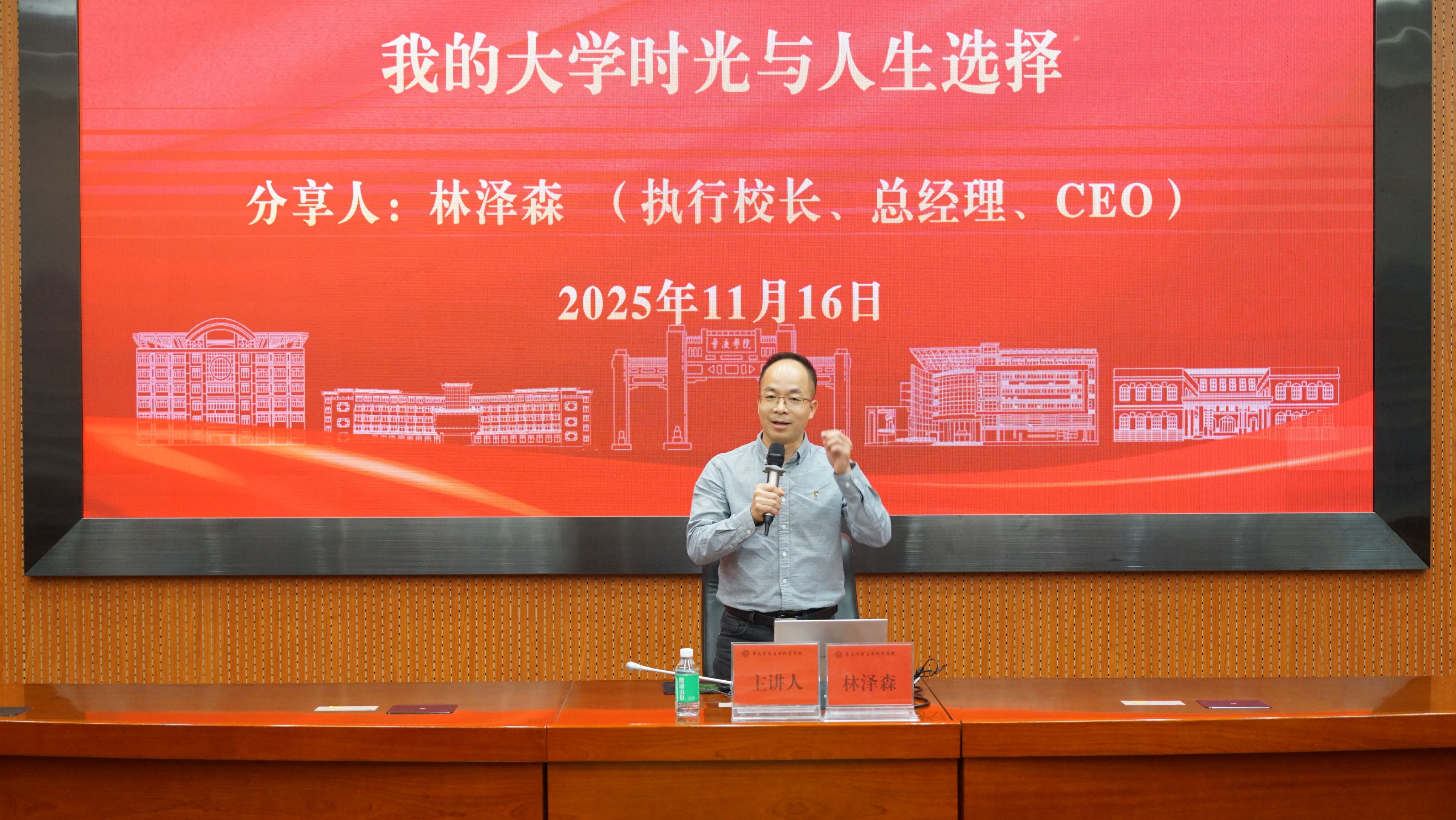 讲座中,林泽森首先回顾了在肇庆学院的奋斗岁月。面对家境贫寒的困境,他通过多种兼职自力更生赚取学费及生活费,同时始终保持优异成绩,连续三年获得校三好学生一等奖学金,并荣获国家奖学金等多项荣誉。在校期间,他担任分团委副书记、学生辅导员,获评校优秀党员、广东省优秀共青团员等称号;参与创建舞龙舞狮队并获得省级比赛一等奖;在毕业典礼上作为优秀毕业生代表上台发言,成为毕业生典范。