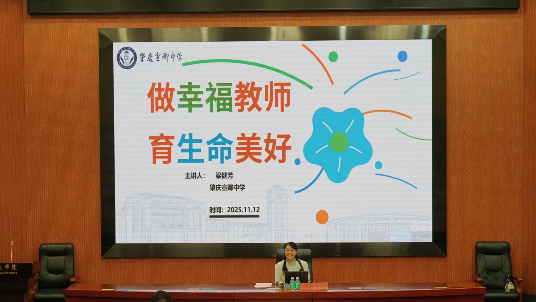 2025年11月12日晚,生命科学学院邀请2001届生物教育专业优秀校友、肇庆宣卿中学党委副书记、副校长梁健芳回校,开展题为《做幸福教师 育生命美好》的专题讲座。讲座由生物科学系主任吴少平主持,学院党委副书记邱兴和、生物科学系焦少珍副教授等400名师生共同参与。