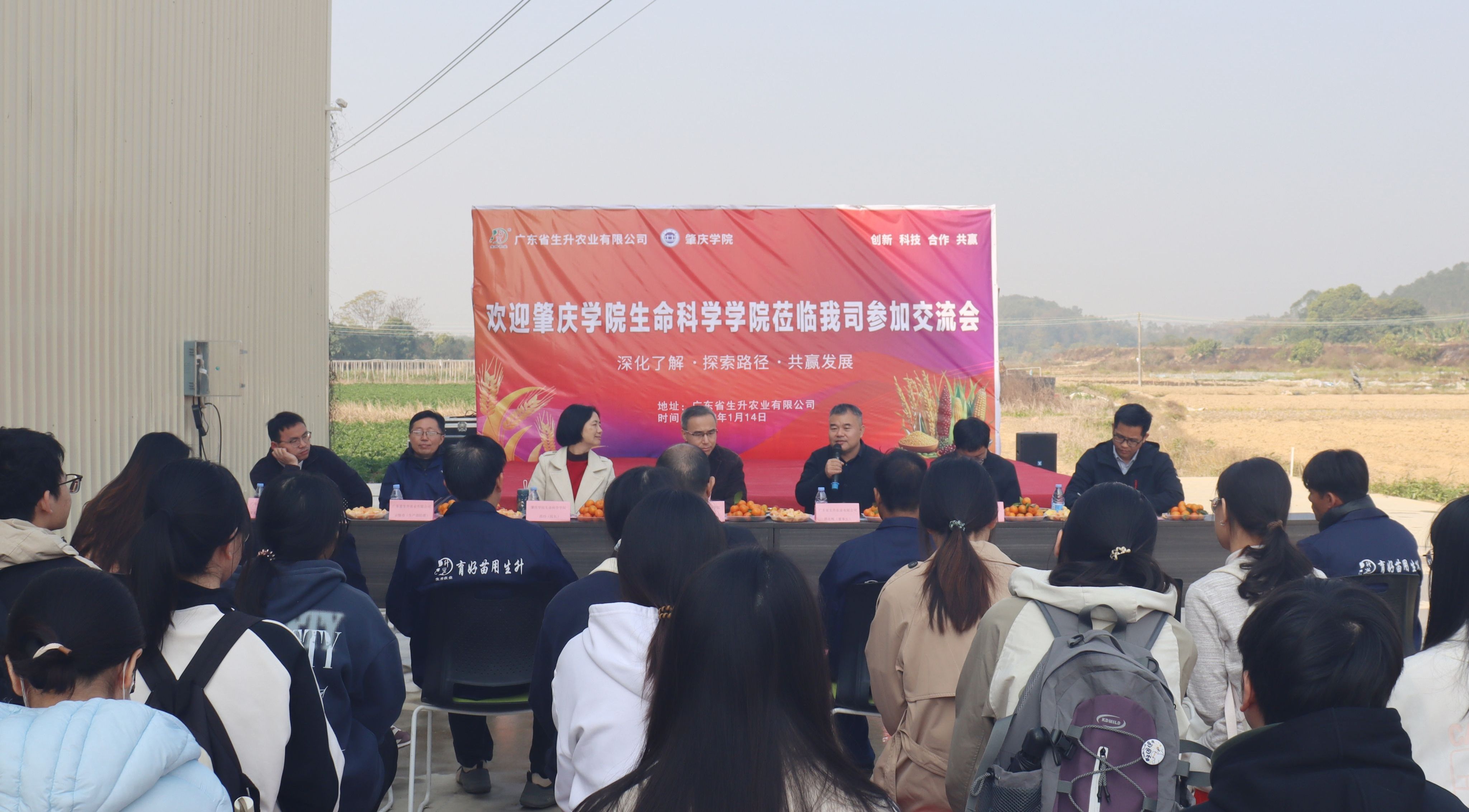 2026年1月14日上午,肇庆学院生命科学学院师生一行26人,在学院党委书记黄剑青、院长邵玲的带领下,赴广东省生升农业有限公司开展访企拓岗与参观交流活动。此次活动旨在深化校政企三方联动,推动产学研深度融合,拓展学生实习与就业渠道,共同探索现代农业科技合作新模式。