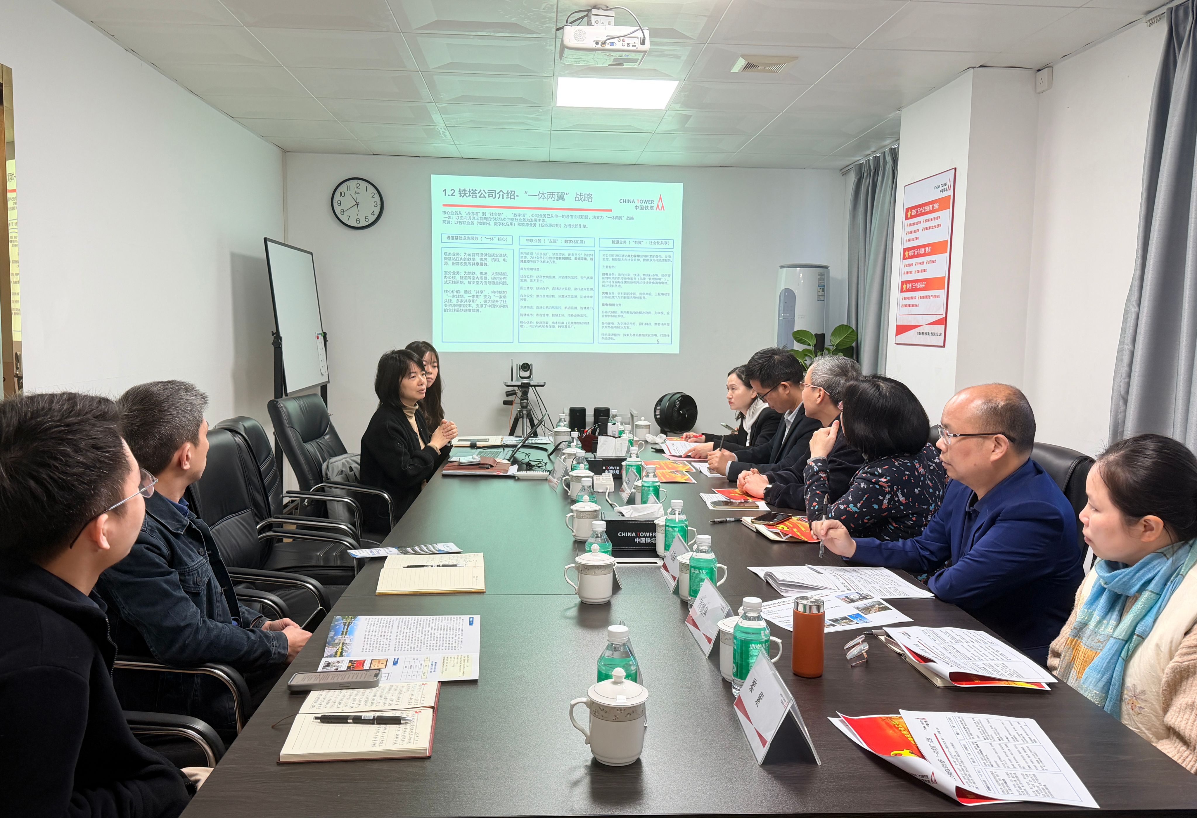 黄剑青书记对铁塔公司在党建与廉政文化建设方面取得的成果表示赞赏,并介绍了生命科学学院作为全省党建工作标杆院系,在打造党建“双创”品牌矩阵、建设群团组织等方面形成的特色做法,以及学院荣获全国模范职工小家、全国巾帼建功先进集体等称号的相关情况。邵玲院长则从人才培养、科研成果与社会服务等方面介绍了学院的发展成效,希望双方以此次交流为起点,围绕“双百行动”、“三所学校和县中质量提升”等项目拓展合作,共同搭建学生实习与就业平台,实现资源共享。